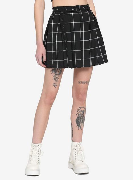 Black White Plaid Pleated Skirt With Grommet Belt Hot Topic Very well made.