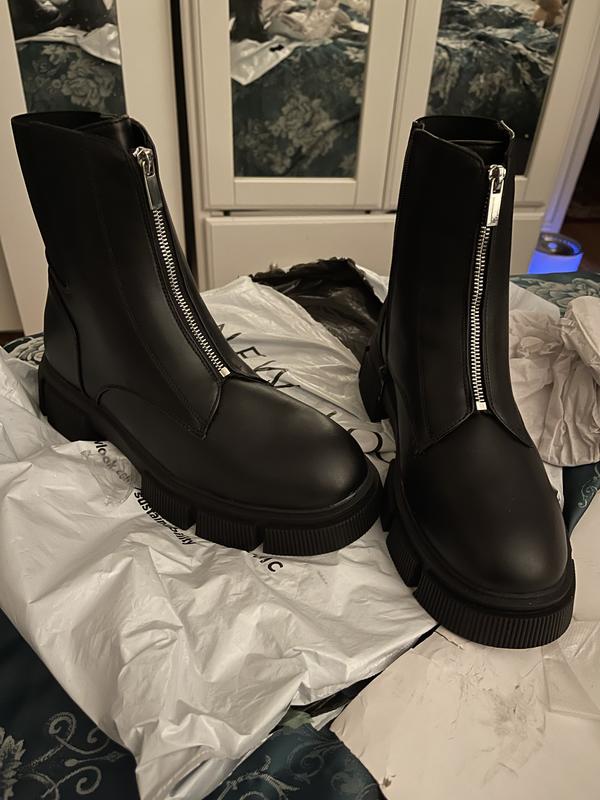New Look zip detail lace up chunky flat boot in black Very well made.