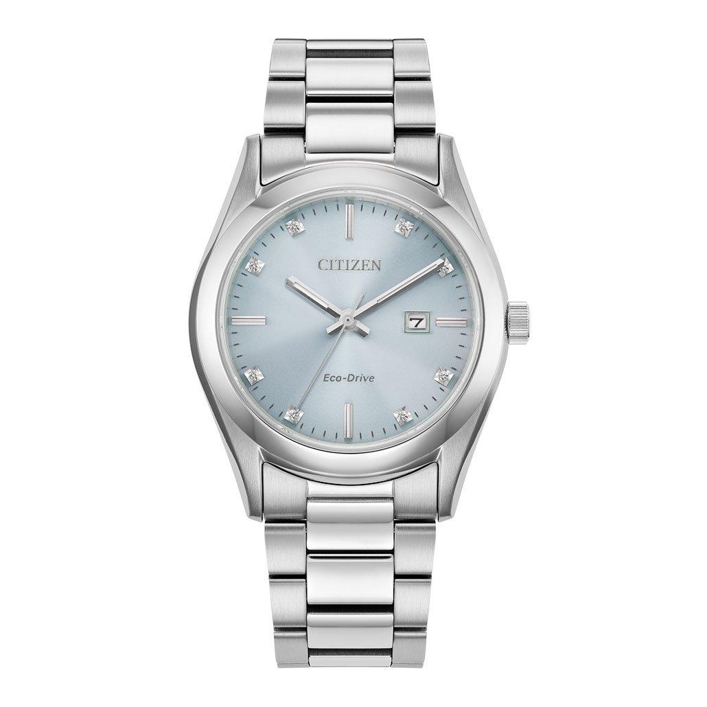 Citizen Diamond 33mm Stainless Steel Eco Drive Ladies Watch EW2700 54L 33 mm Blue Dial Beaverbrooks Very well made.