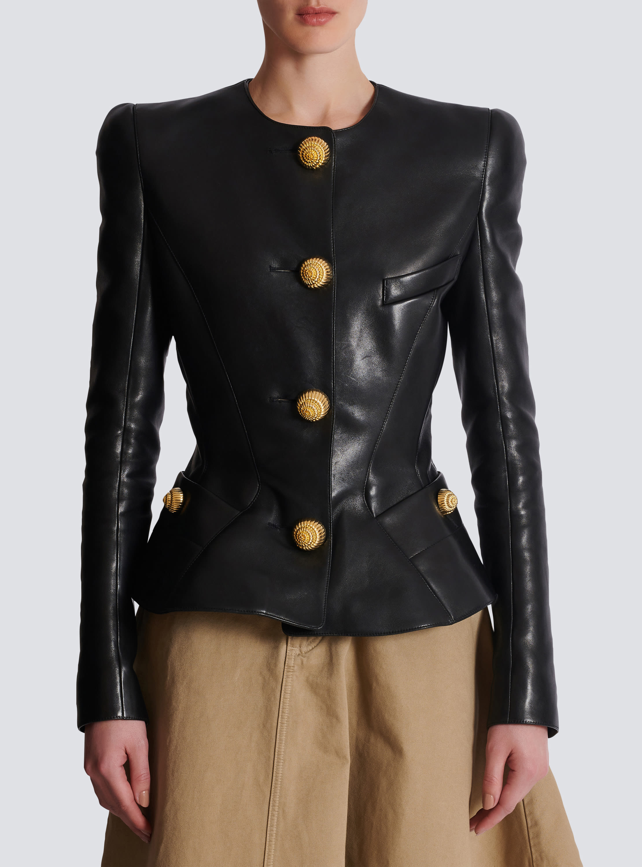 Lambskin leather peplum jacket Very well made.