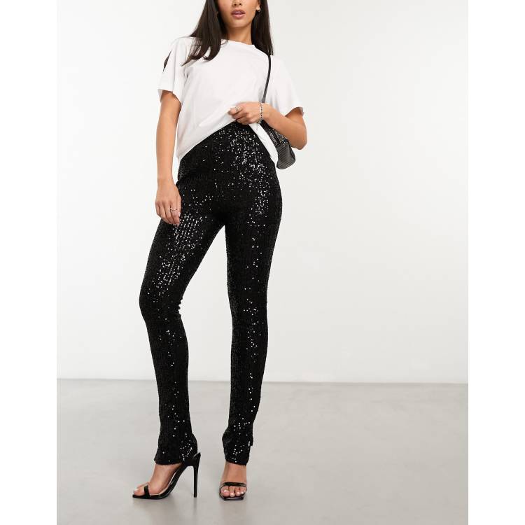 4th Reckless sequin split hem leggings in black Very well made.
