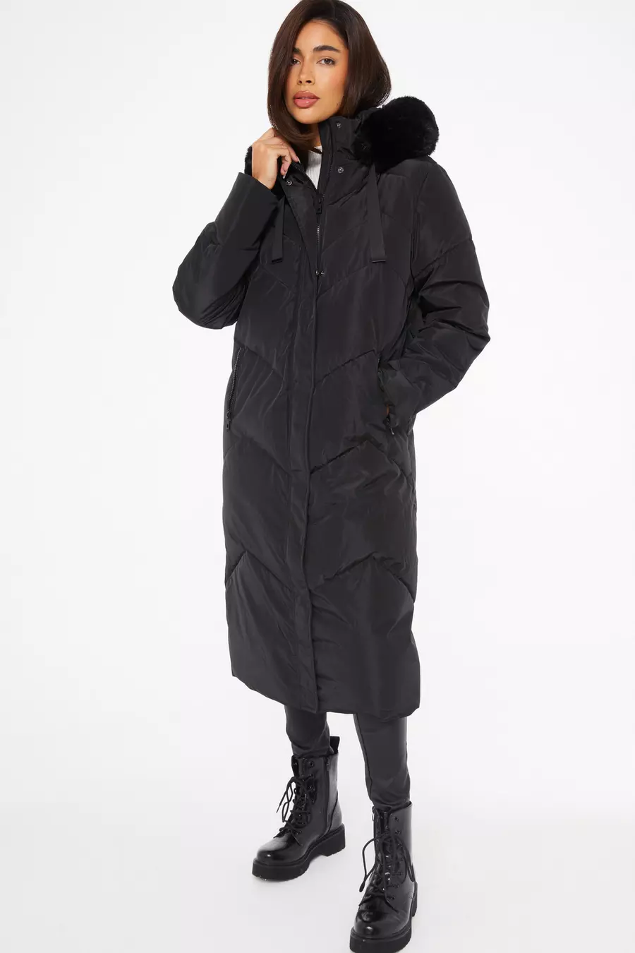 Black Padded Faux Fur Hood Parka QUIZ Clothing Very well made.