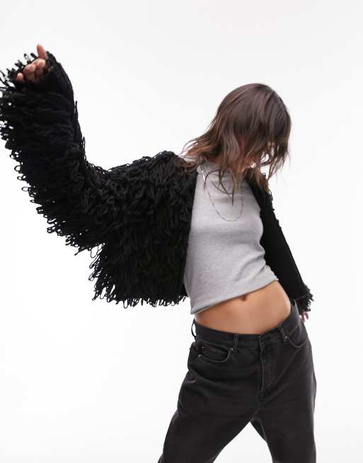 Topshop knit shaggy cardigan in black Very well made.