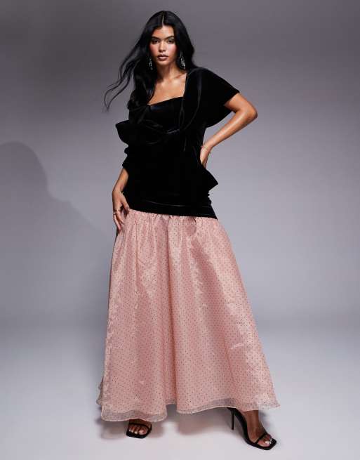 ASOS LUXE velvet bodice maxi dress with textured organza tulle skirt in Black Very well made.