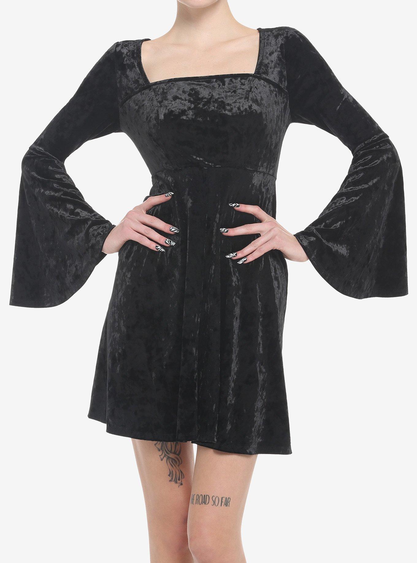 Black Crushed Velvet Bell Sleeve Mini Dress Hot Topic Very well made.