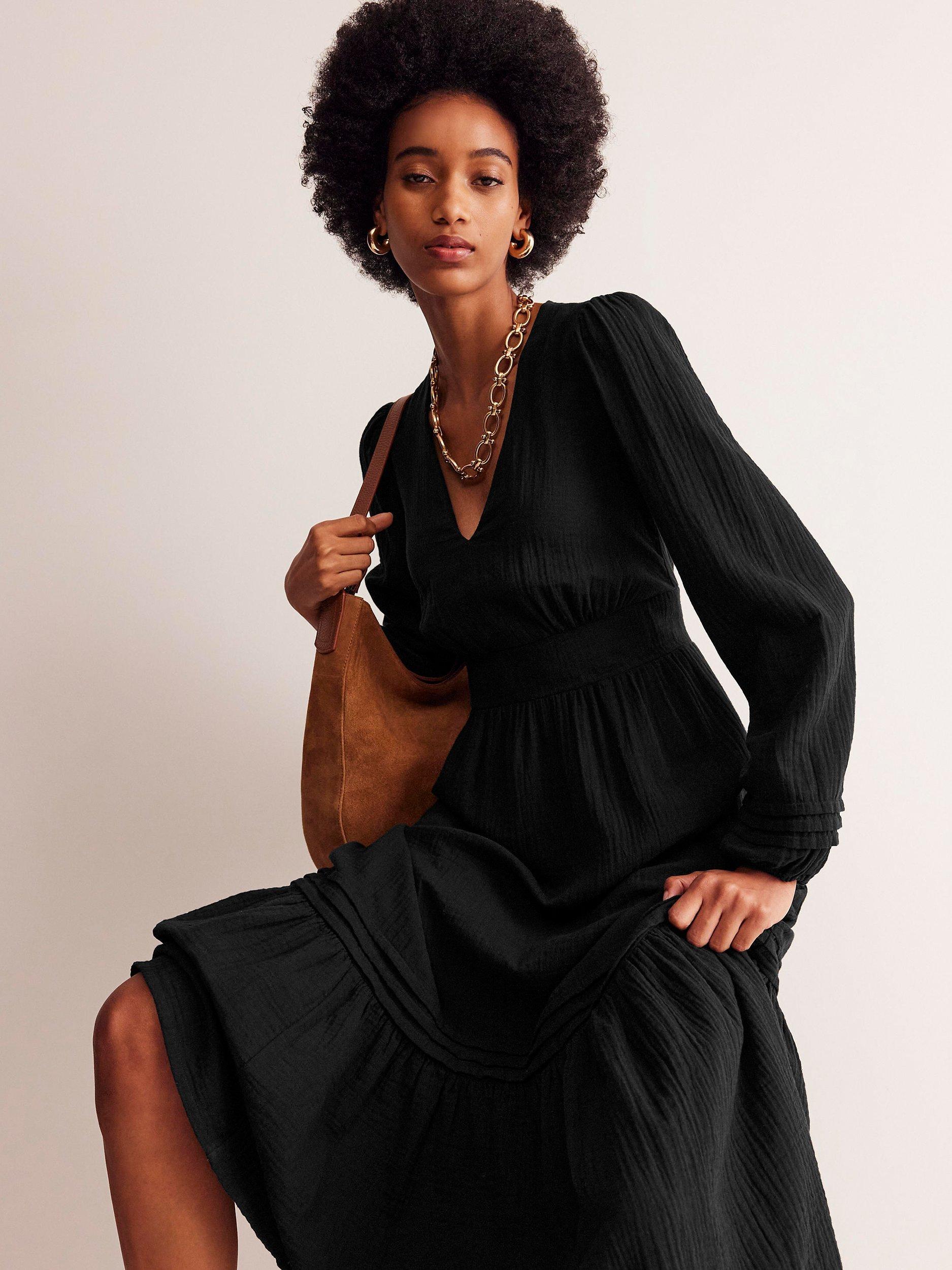 Boden Eve Cloth Midi Dress Black Very well made.