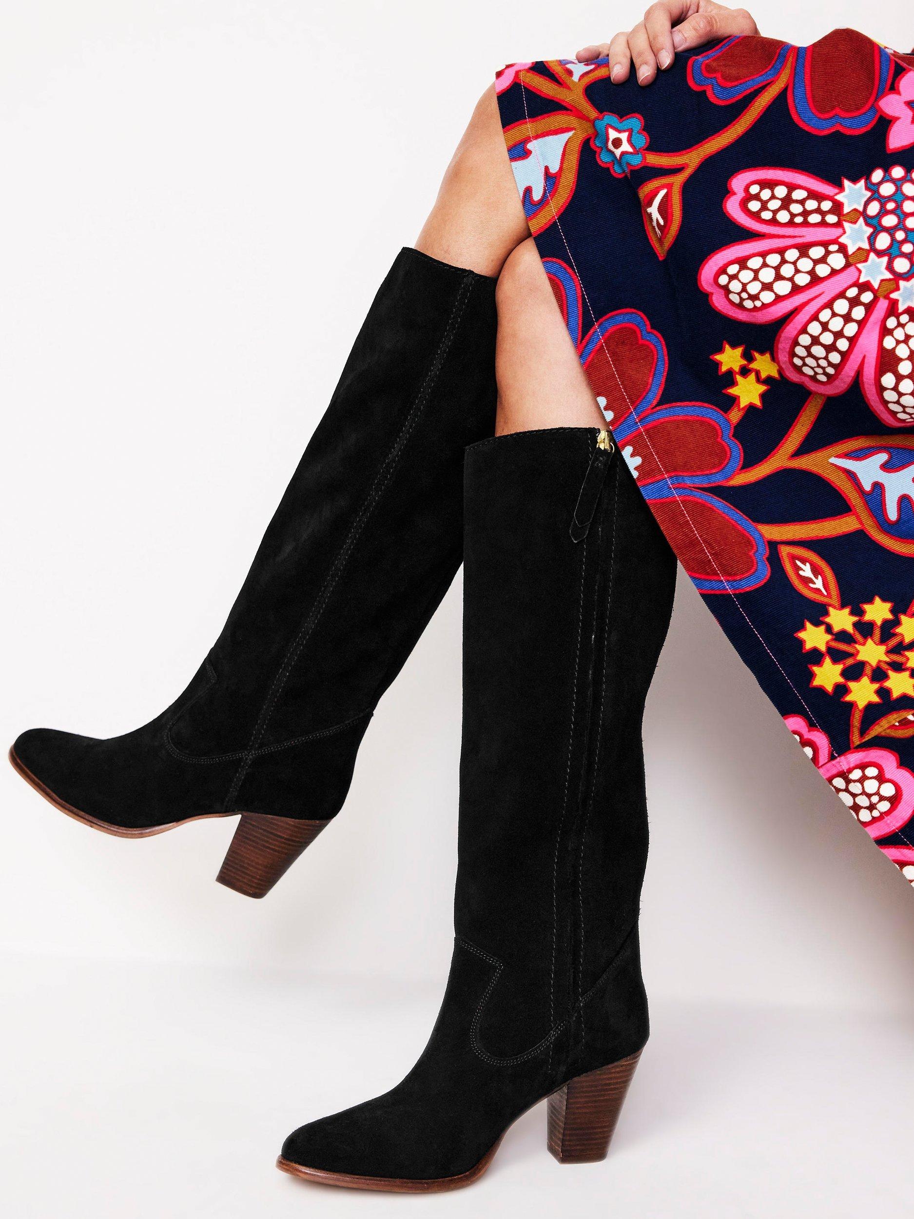 Boden Suede Knee High Boots Black Very well made.