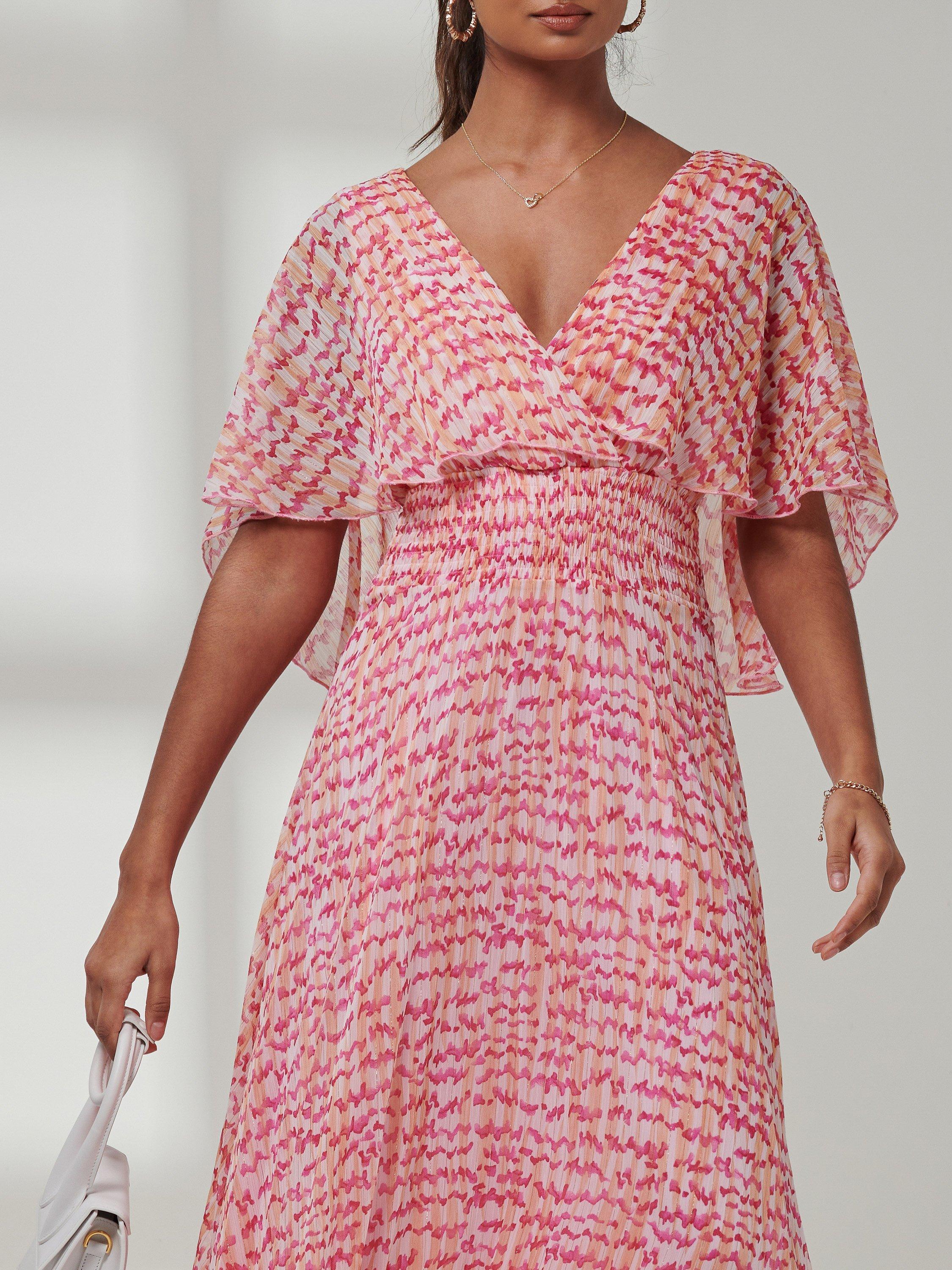 Jolie Moi Kyra Chiffon Midi Dress Pink Abstract Very well made.