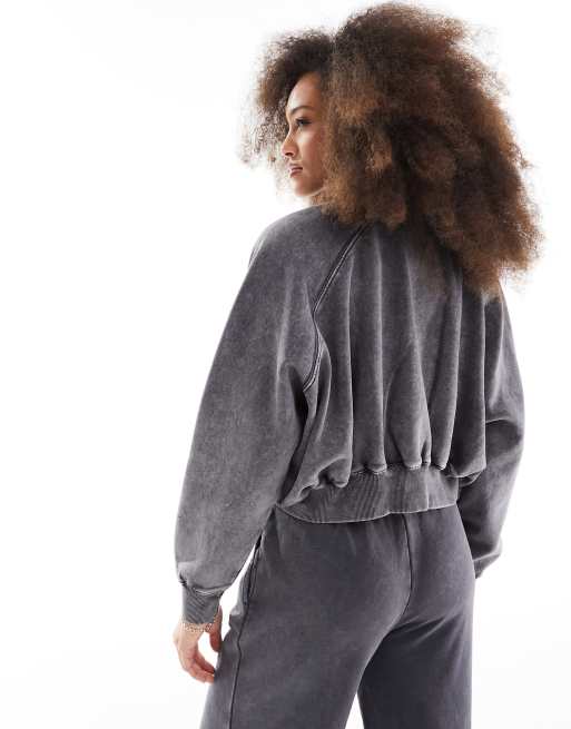 Pull Bear zip through bomber style sweater co ord in acid wash grey ASOS Very well made.