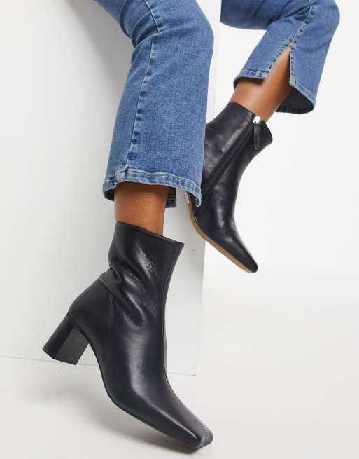 ASOS DESIGN Rain Bottines en cuir de qualite superieure a bout carre Noir ASOS Very well made.
