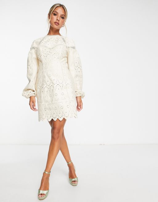 ASOS EDITION broderie twist front mini dress with puff sleeve in white ASOS Very well made.