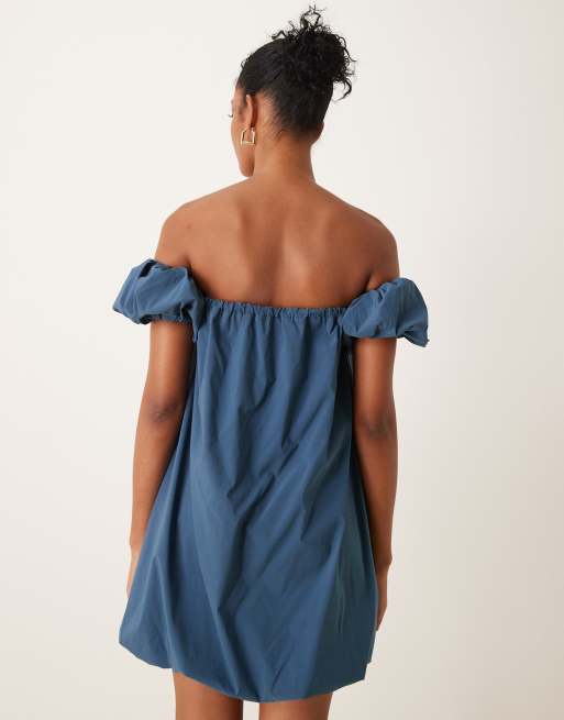 ASOS DESIGN bubble mini dress in parachute fabric in steel blue Very well made.