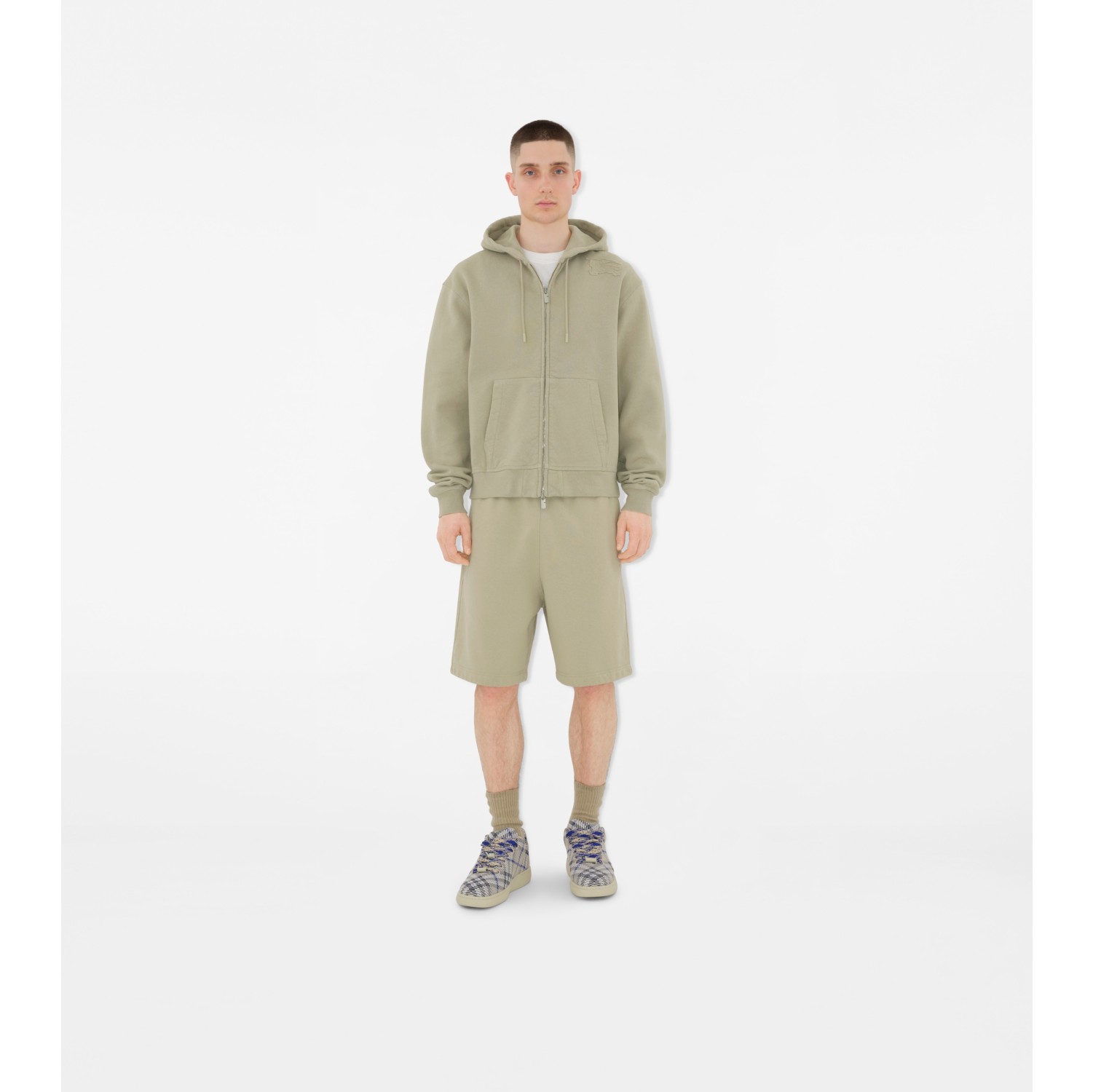 Cotton Zip Hoodie in Lichen Men Burberry Official Very well made.