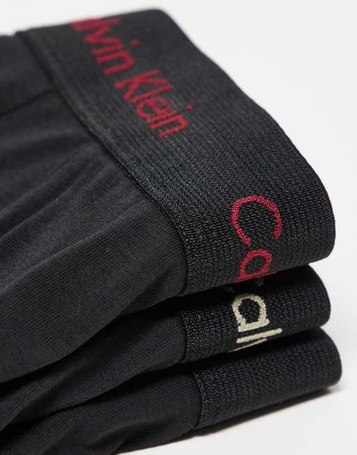 Calvin Klein low rise cotton stretch trunks 3 pack in black with coloured logo Very well made.