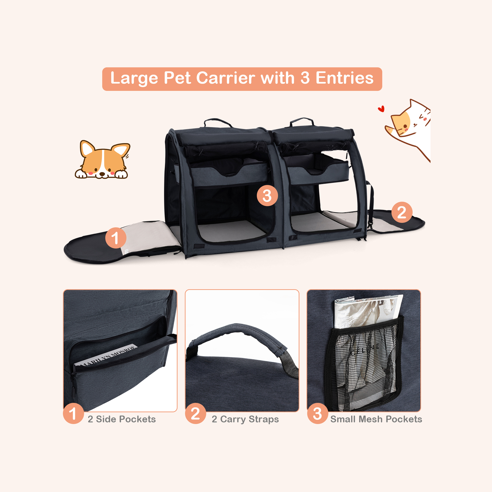 Costway 2 in 1 Portable Pet Carrier Dog Cat Travel Backpack Black Bunnings Australia Very well made.