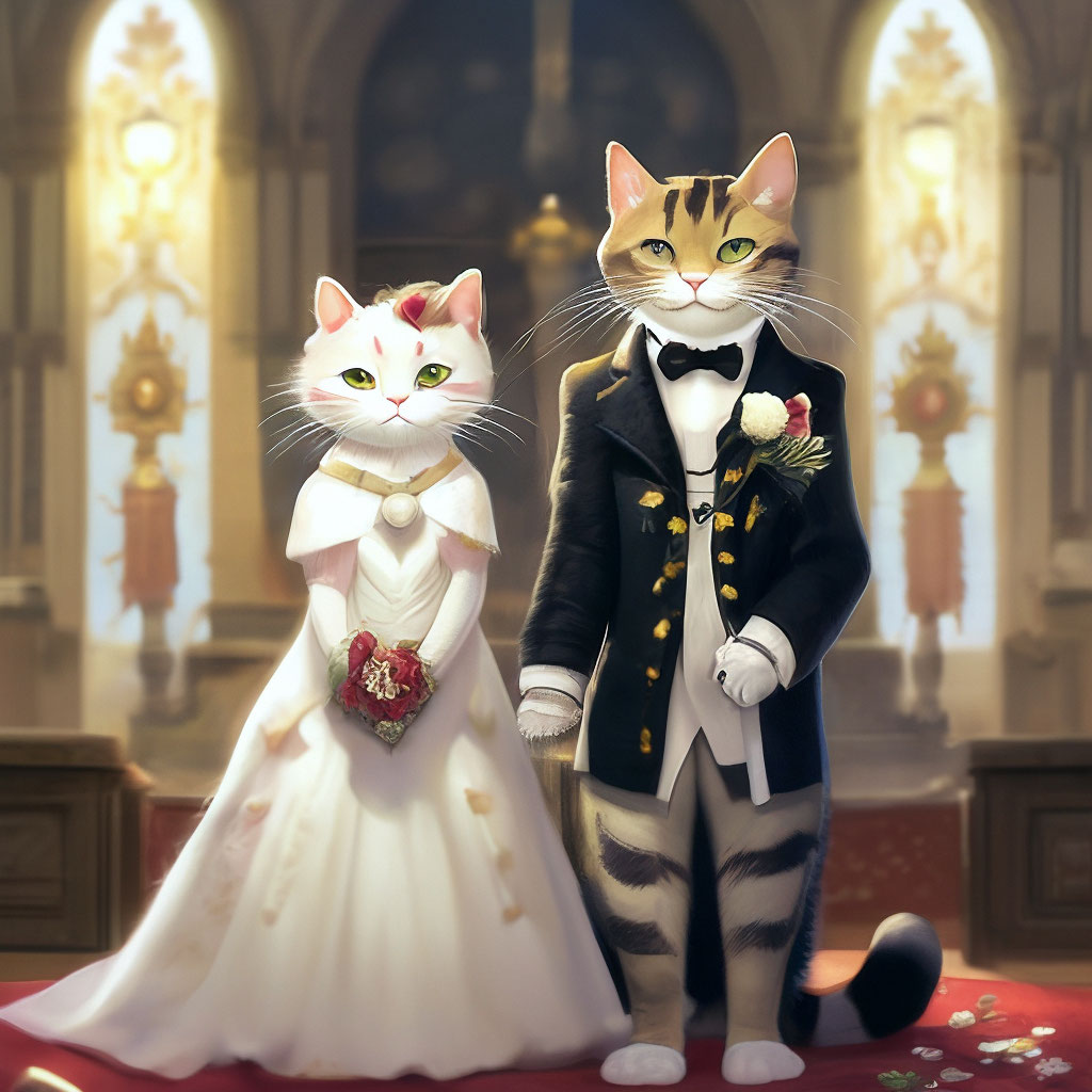 Wedding of cats cat bride groom cat image created in Shedevrum Very well made.