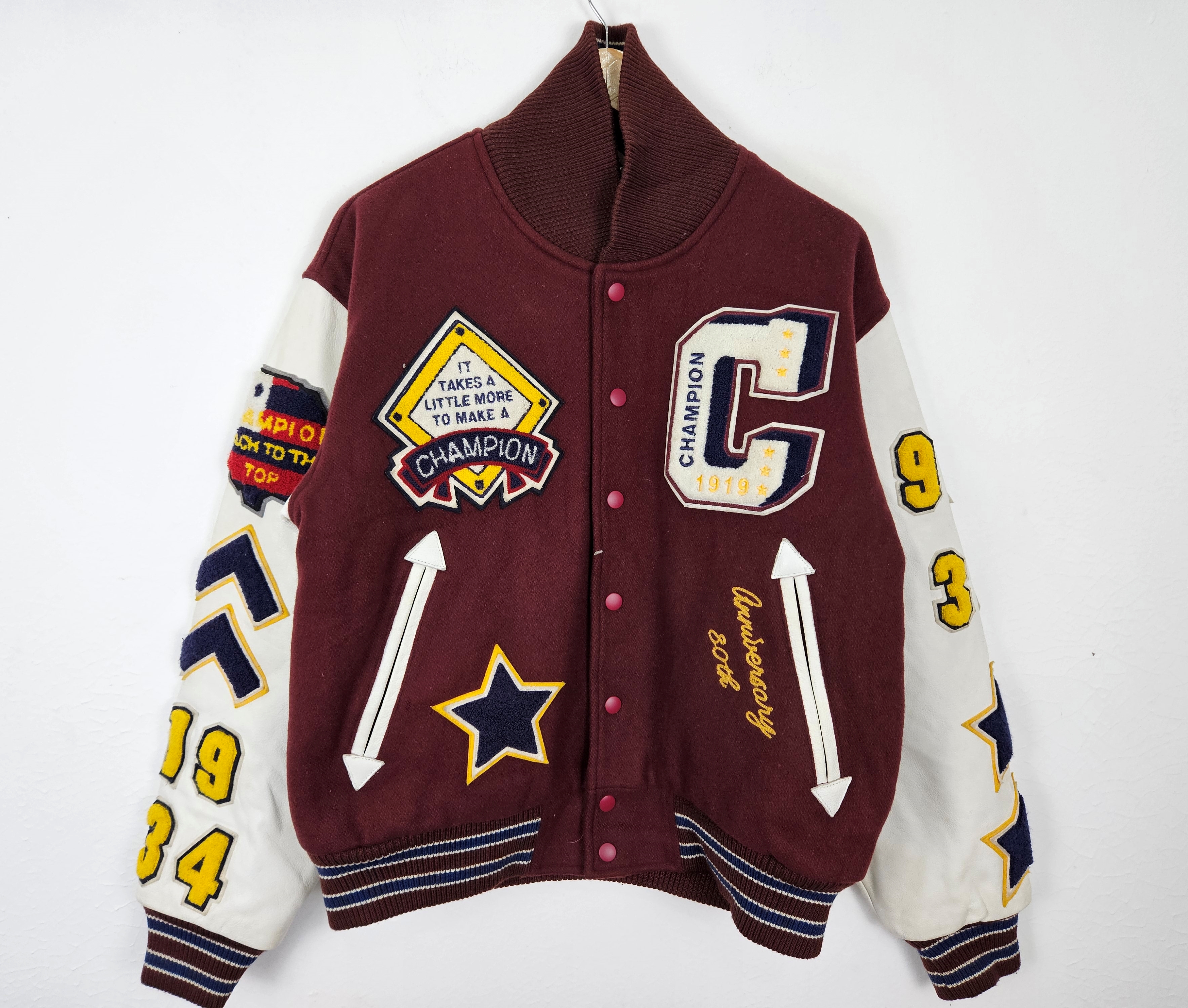 Champion Vintage Champion Varsity Patch Leather Jacket junkstuff REVERSIBLE Very well made.
