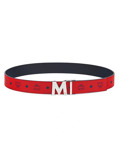 MCM Claus M Reversible Belt Visetos Monogram Red in Coated Canvas with Black tone GB Very well made.