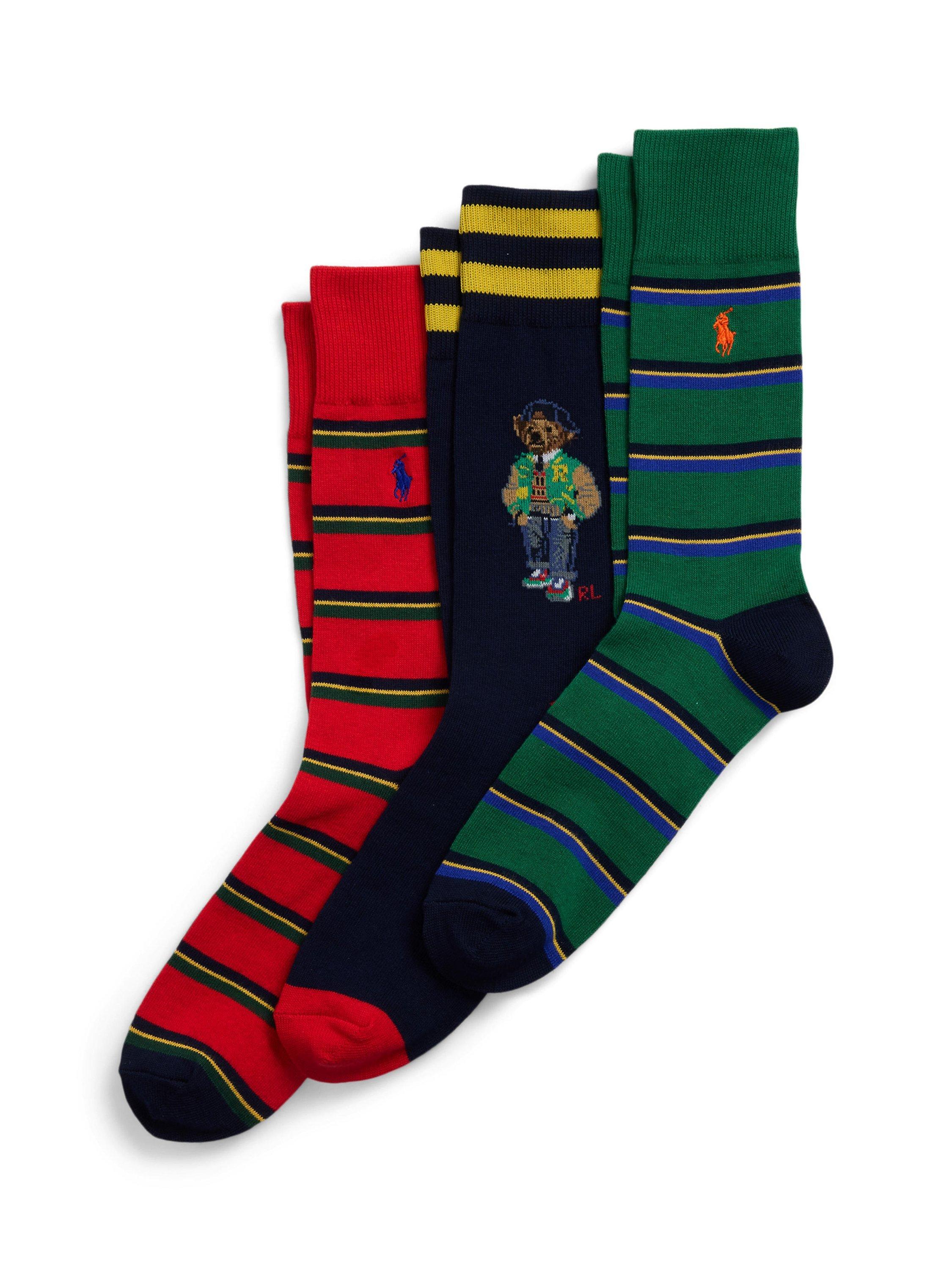 Ralph Lauren Bear Stripe Socks Gift Set Pack of 3 One Size Multi Very well made.