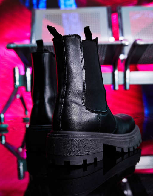 ASOS DESIGN super chunky square toe chelsea boot in black faux leather Very well made.