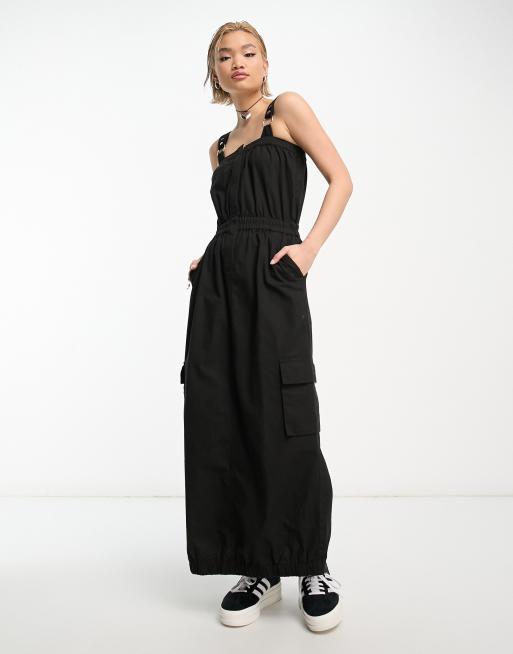 Cra wallonieShops black long two piece dress COLLUSION utility midi dress in black Very well made.
