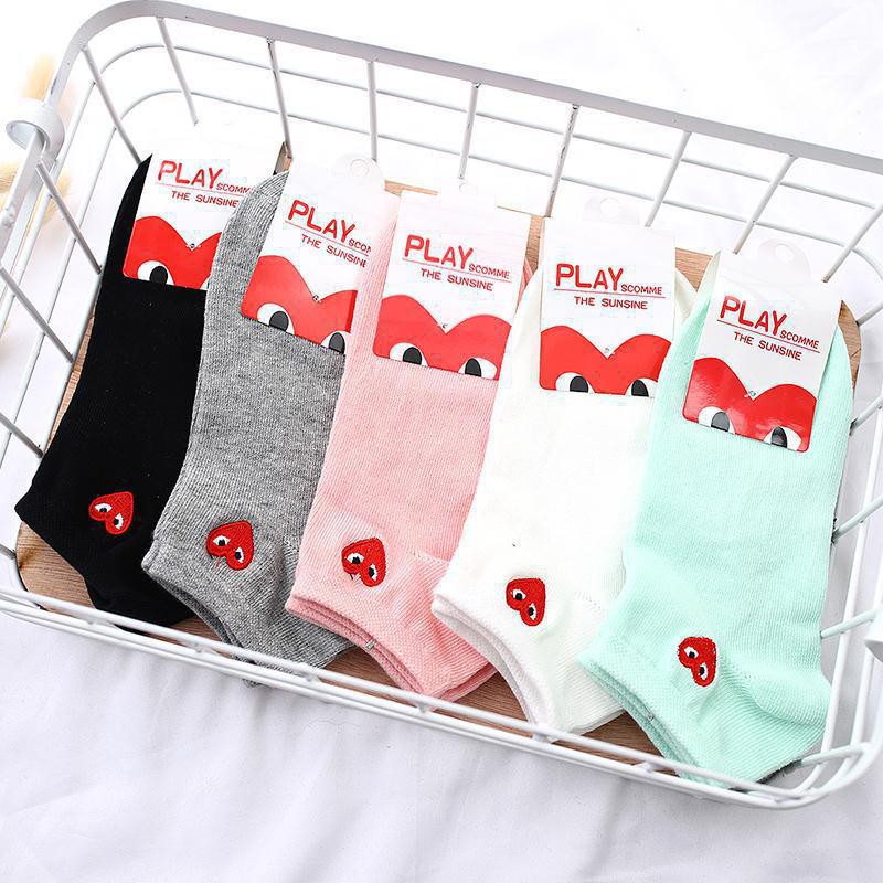 5 PCS CDG HEART COTTON SOCKS Shallow Socks Boat Socks Black White Gray Very well made.