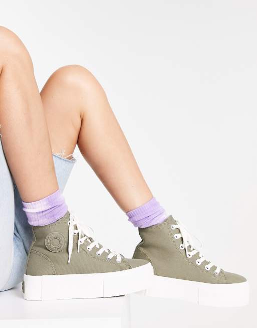 Bershka checkerboard high top sneakers in khaki Very well made.