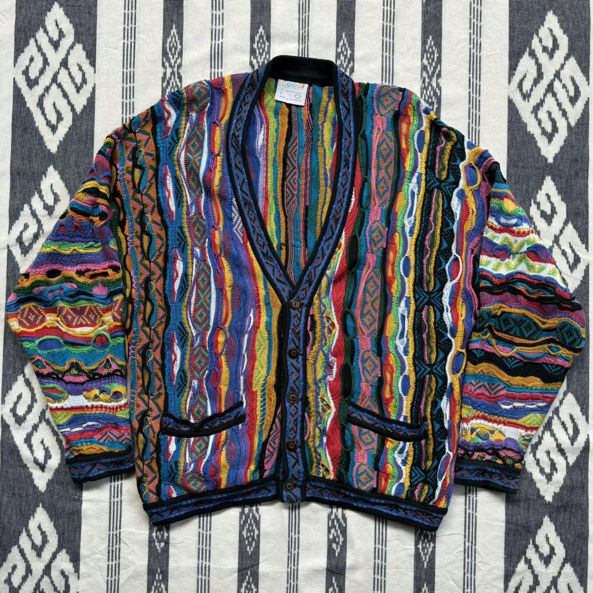 Rare Coogi Human Face Horse Flower Animal Vaporwave Pattern Multicolor Pastel Neon 3D Knit Jumper Sweater Cardigan Jacket 90s 1990s Vintage Etsy Very well made.