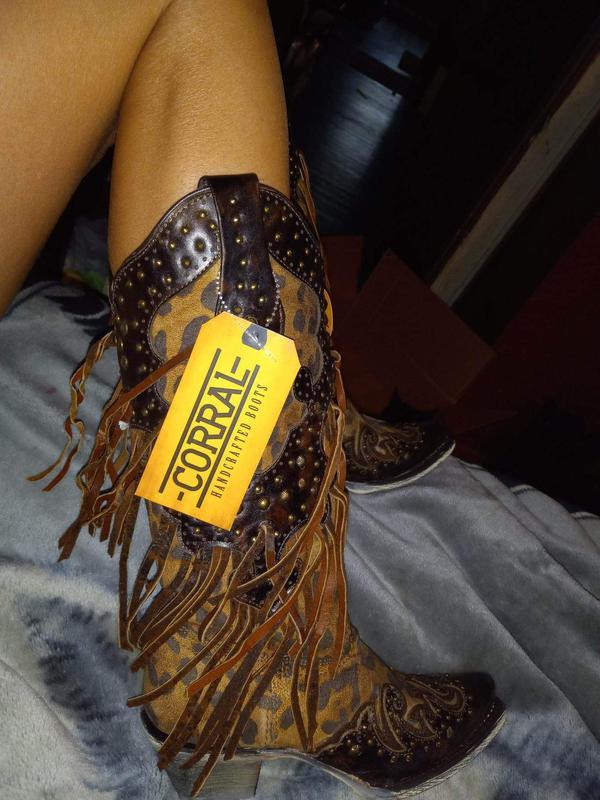 Corral Women s Leopard Stud Fringe Western Boots Snip Toe Sheplers Very well made.