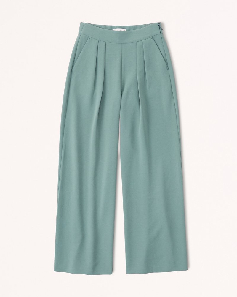 Women s Premium Crepe Tailored Ultra Wide Leg Pant in Green Size 27 Abercrombie Fitch Very well made.