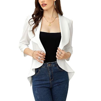 Women s Business Blazer 3 4 Sleeve Dressy Open Front Work Office Cardigan Cropped Suit Jacket Very well made.