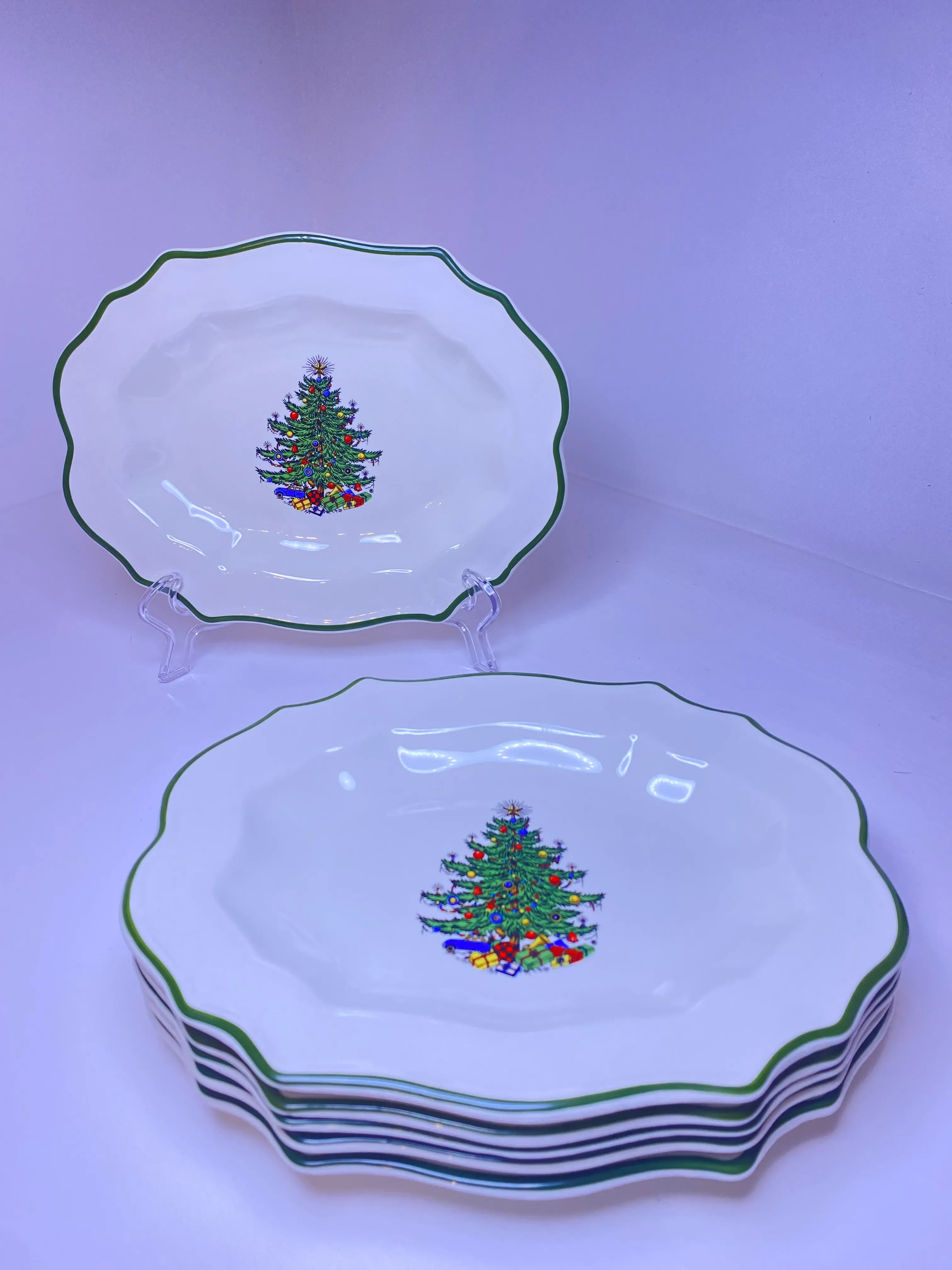 Set of 2 Vintage Cuthbertson Original Christmas Tree Dinner Plates With Wide Green Rim SEE DESCRIPTION Free Shipping Etsy Very well made.