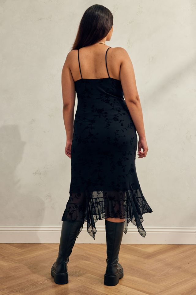 UO Quartz Black Floral Flocked Mesh Midi Dress Very well made.