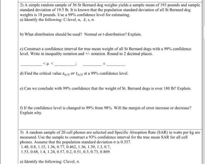 Solved 2 A simple random sample of 36 St Bernard dog Chegg Very well made.