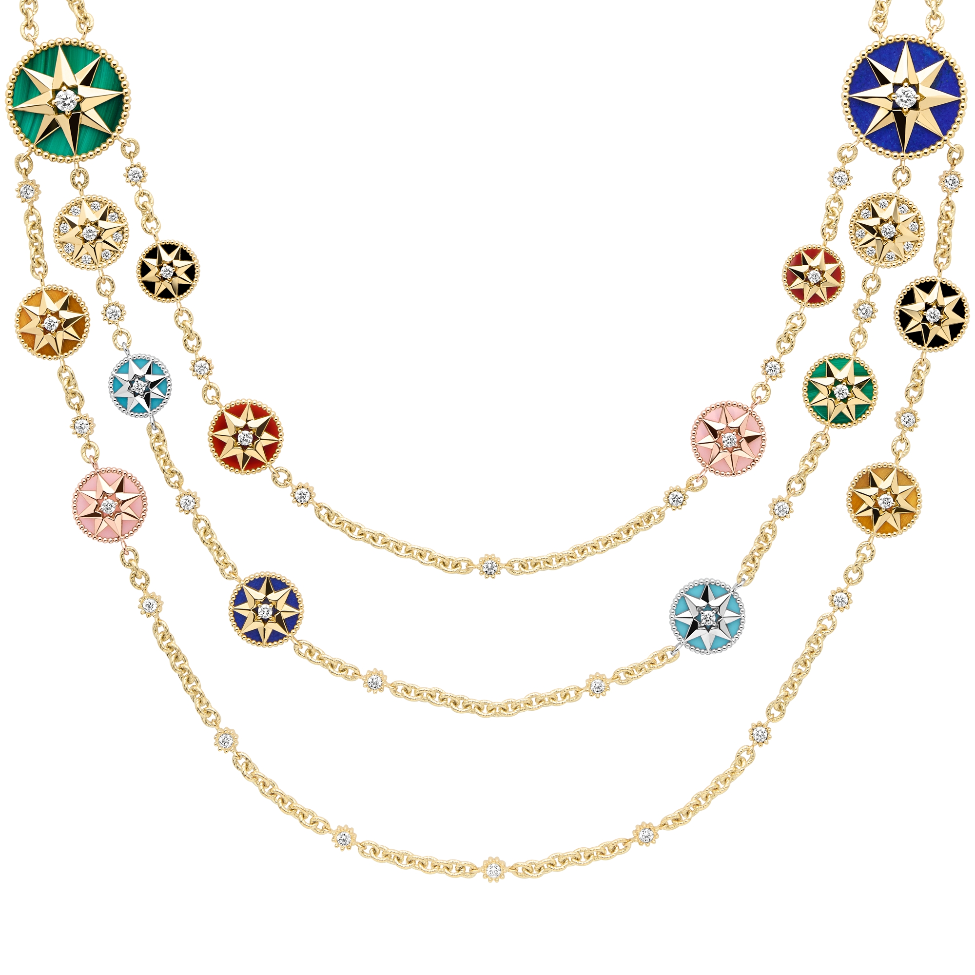 Rose des Vents Bracelet Yellow Pink and White Gold Diamonds and Gemstones DIOR Very well made.