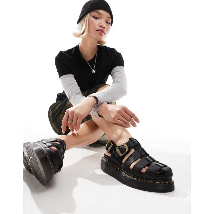 ClassicfuncenterShops Sandalias negras estilo cangrejeras con suela Quad Archive de Dr. Martens Martens combat boots in New York Very well made.