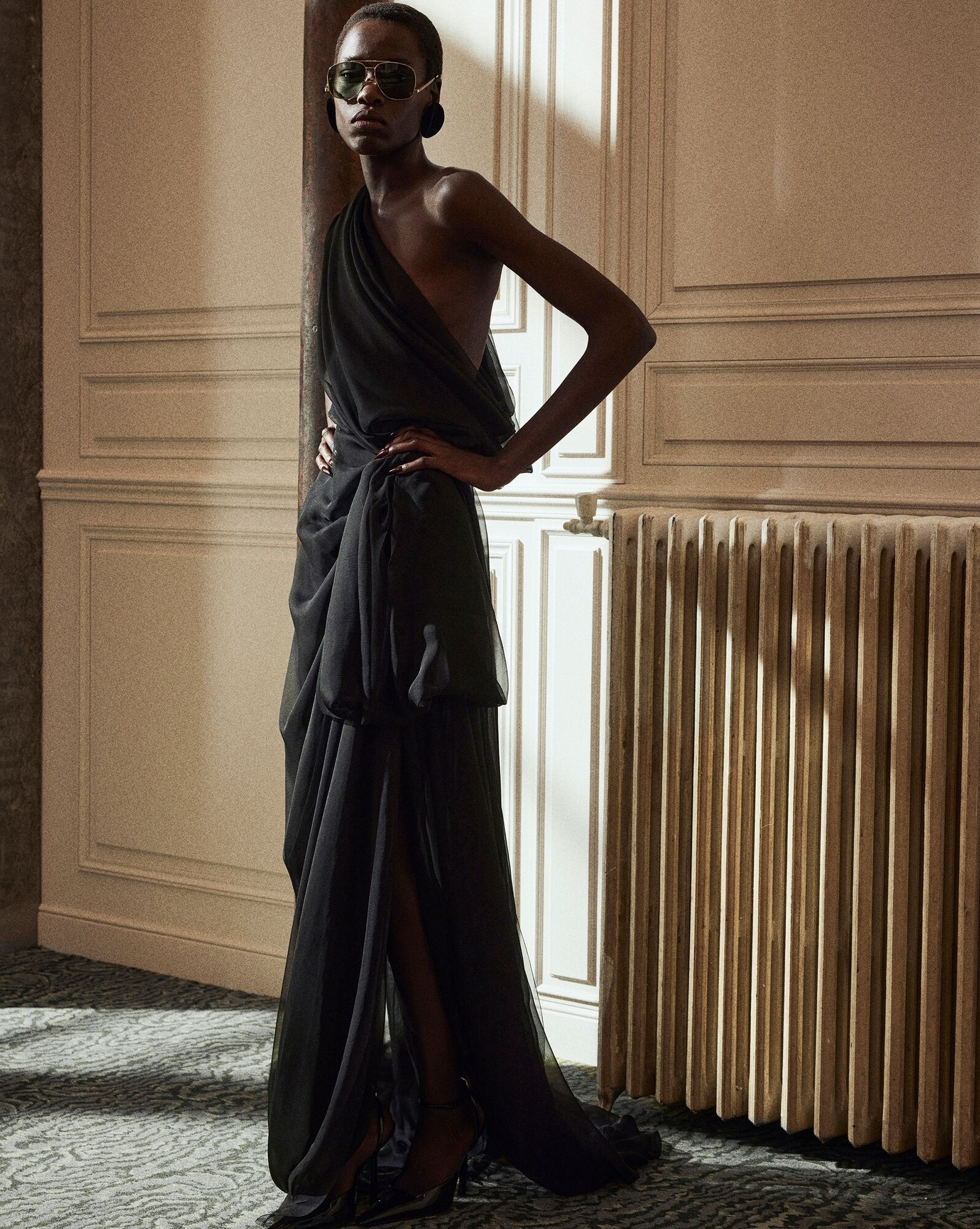 SAINT LAURENT draped one shoulder gown in silk muslin REVERSIBLE Very well made.