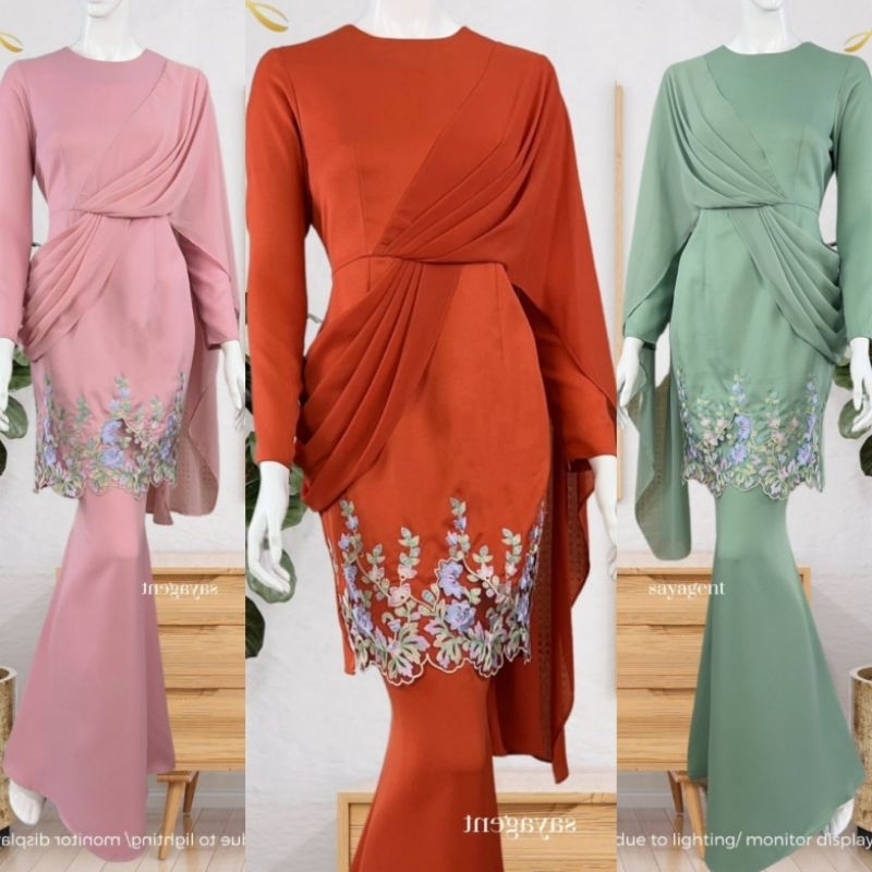 Kurung Modern Embroidery With Shawl Decoration viral 2024 Kurung brick orange brick lilac dusty green Wedding Clothes Shopee Singapore Very well made.