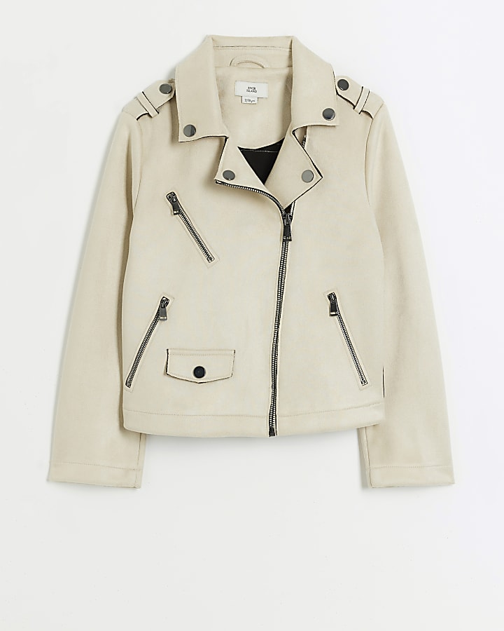 Girls ecru zip up biker jacket River Island Very well made.