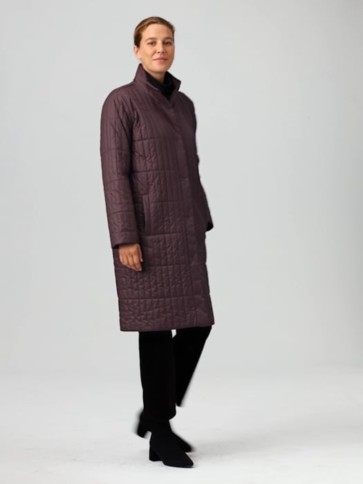 Eggshell Recycled Nylon Stand Collar Coat EILEEN FISHER Very well made.