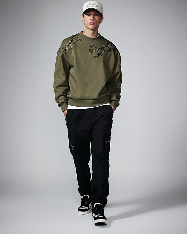 Khaki Oversized Floral Embroidered Sweatshirt River Island Very well made.