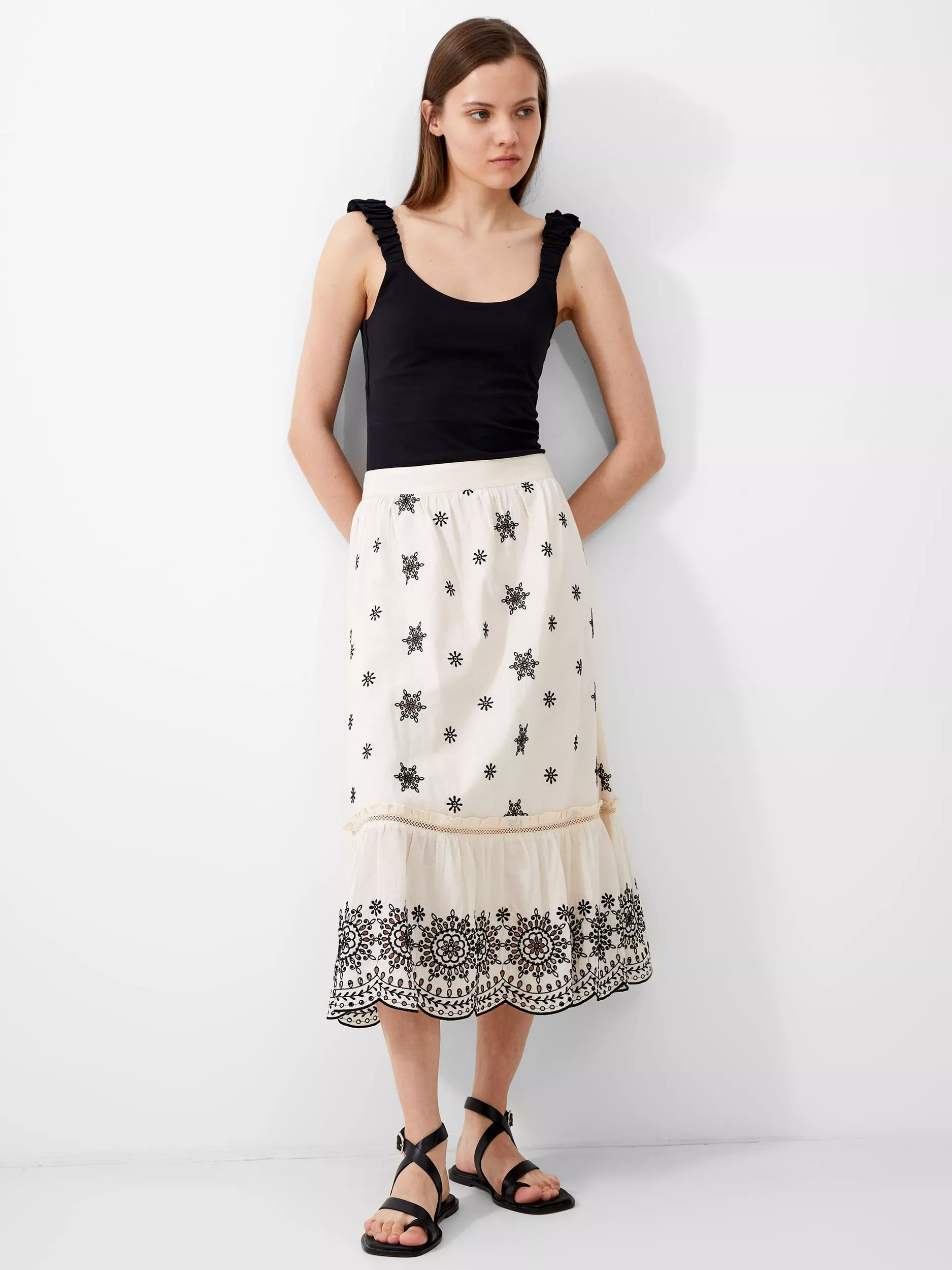 Embroidered Full Midi Skirt White Embroidered Very well made.