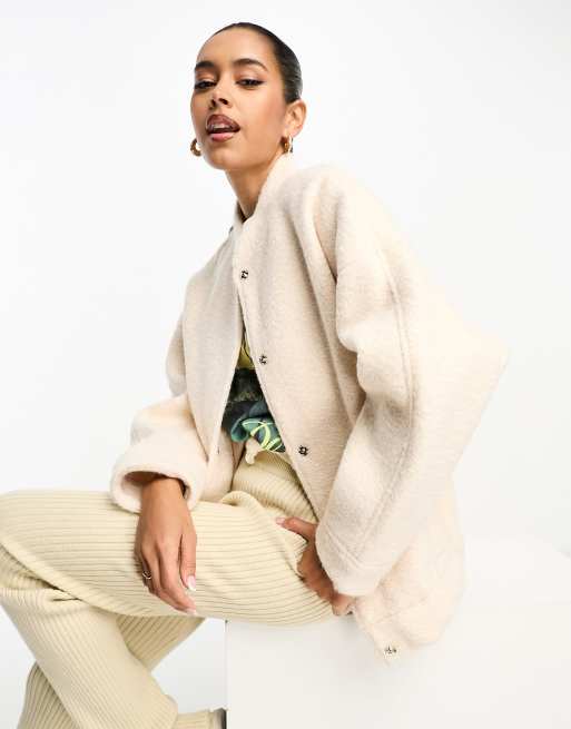 River Island faux wool bomber jacket in cream Very well made.