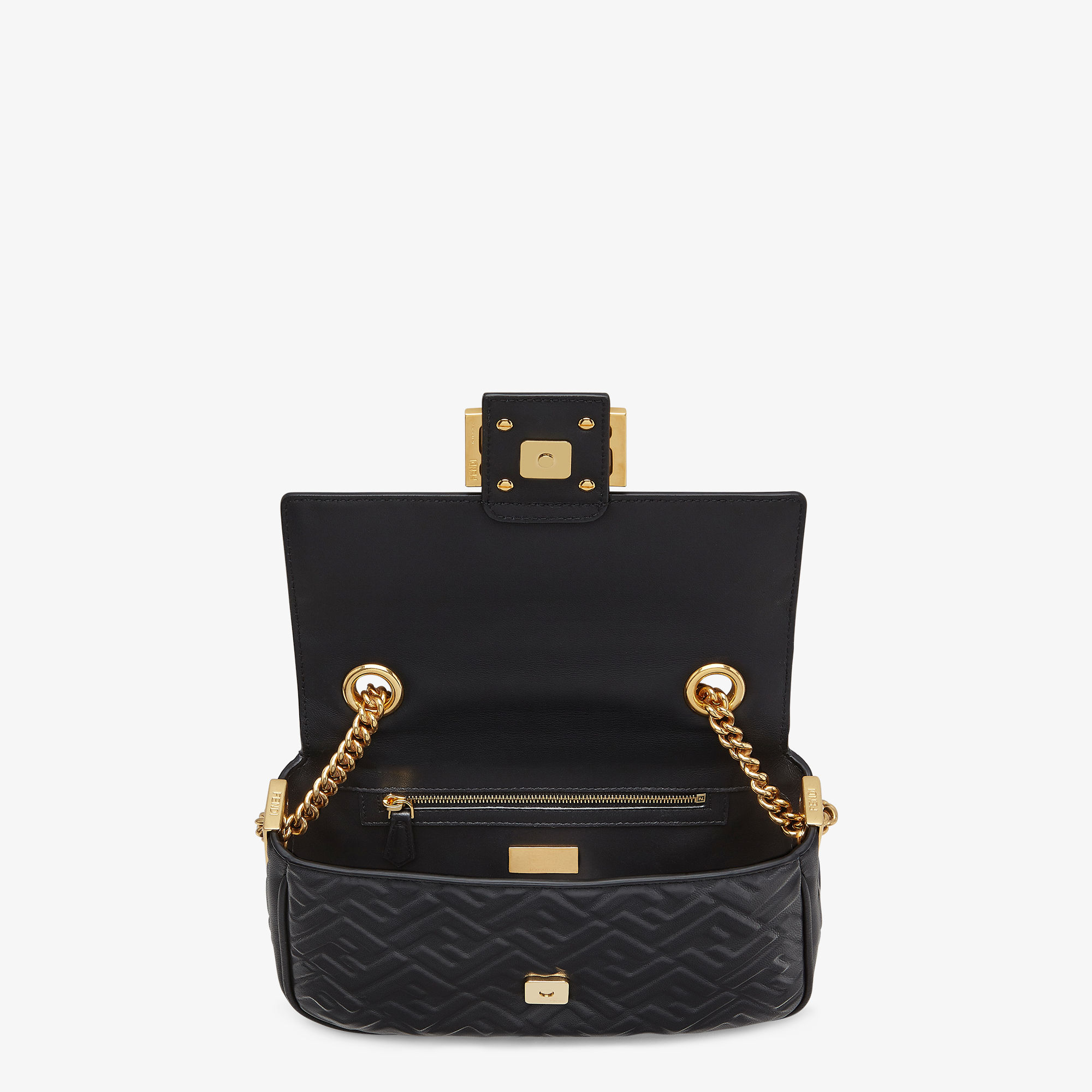Baguette Chain Midi Black nappa leather bag with FF motif Fendi Very well made.