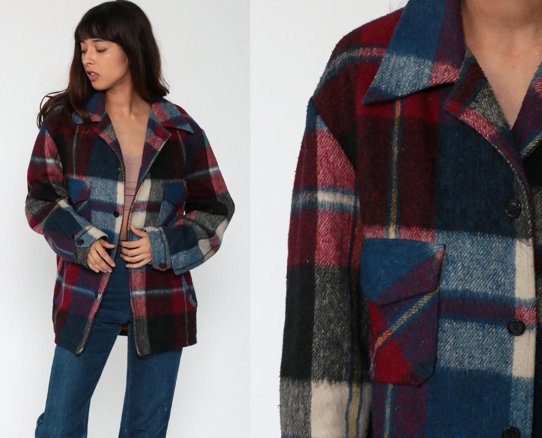 Blue Plaid Jacket Campus Jacket 70s Coat CPO Jacket Lumberjack Shop Exile Tucson AZ Very well made.