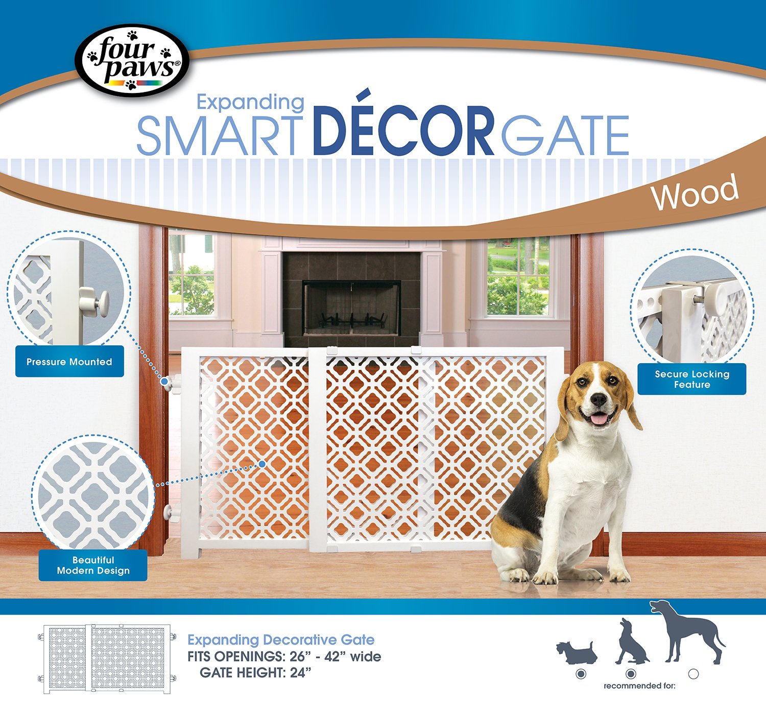 Four Paws Expanding Smart Decor Pet Gate Wood Very well made.