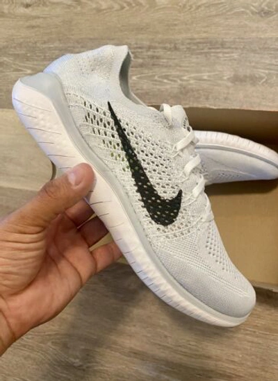 Pre owned Nike Free Rn Flyknit 2018 pure Platinum White 942839 100 Women s 9.5 Men s 8 ModeSens Very well made.