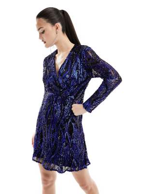 French Connection wrap front embellished mini dress in cobalt blue Smart Closet Very well made.