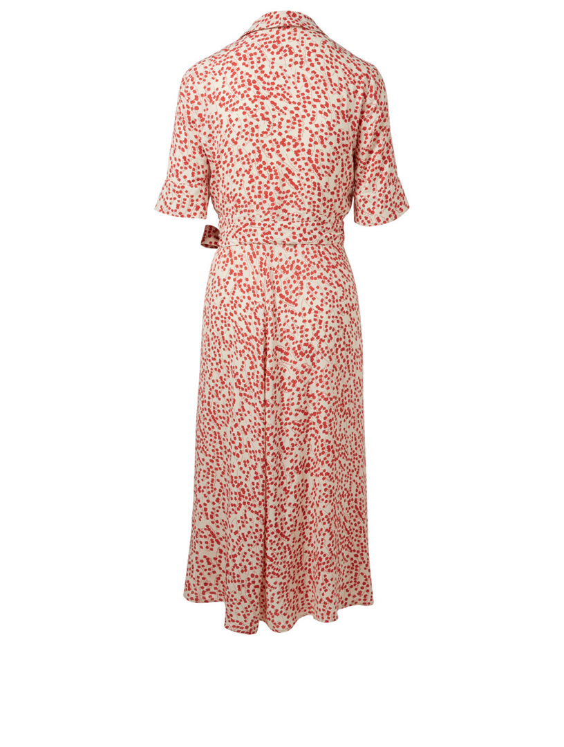 Wrap effect printed crepe midi dress Very well made.