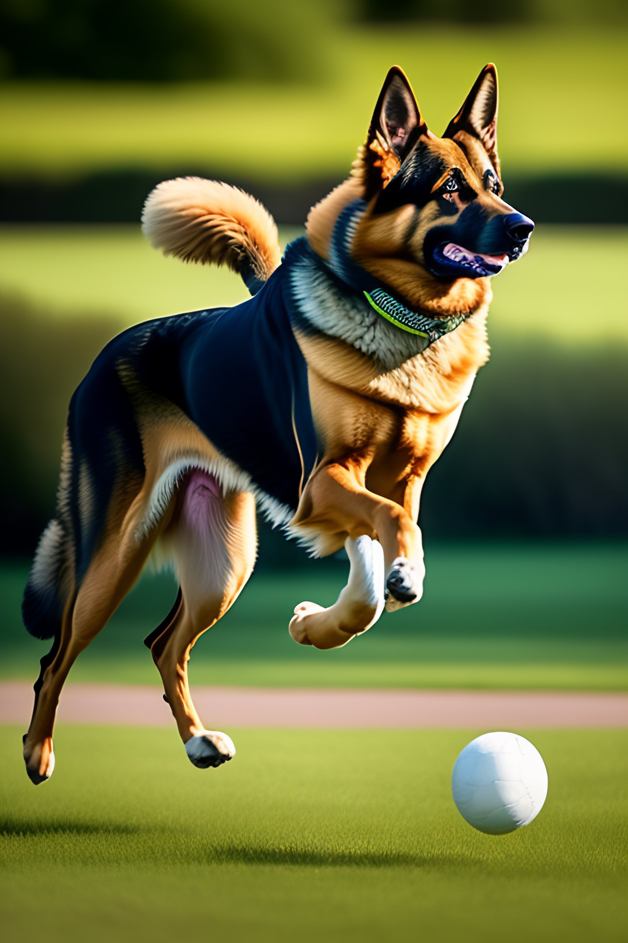 Lexica German shepherd jumping and catching frisbee Very well made.